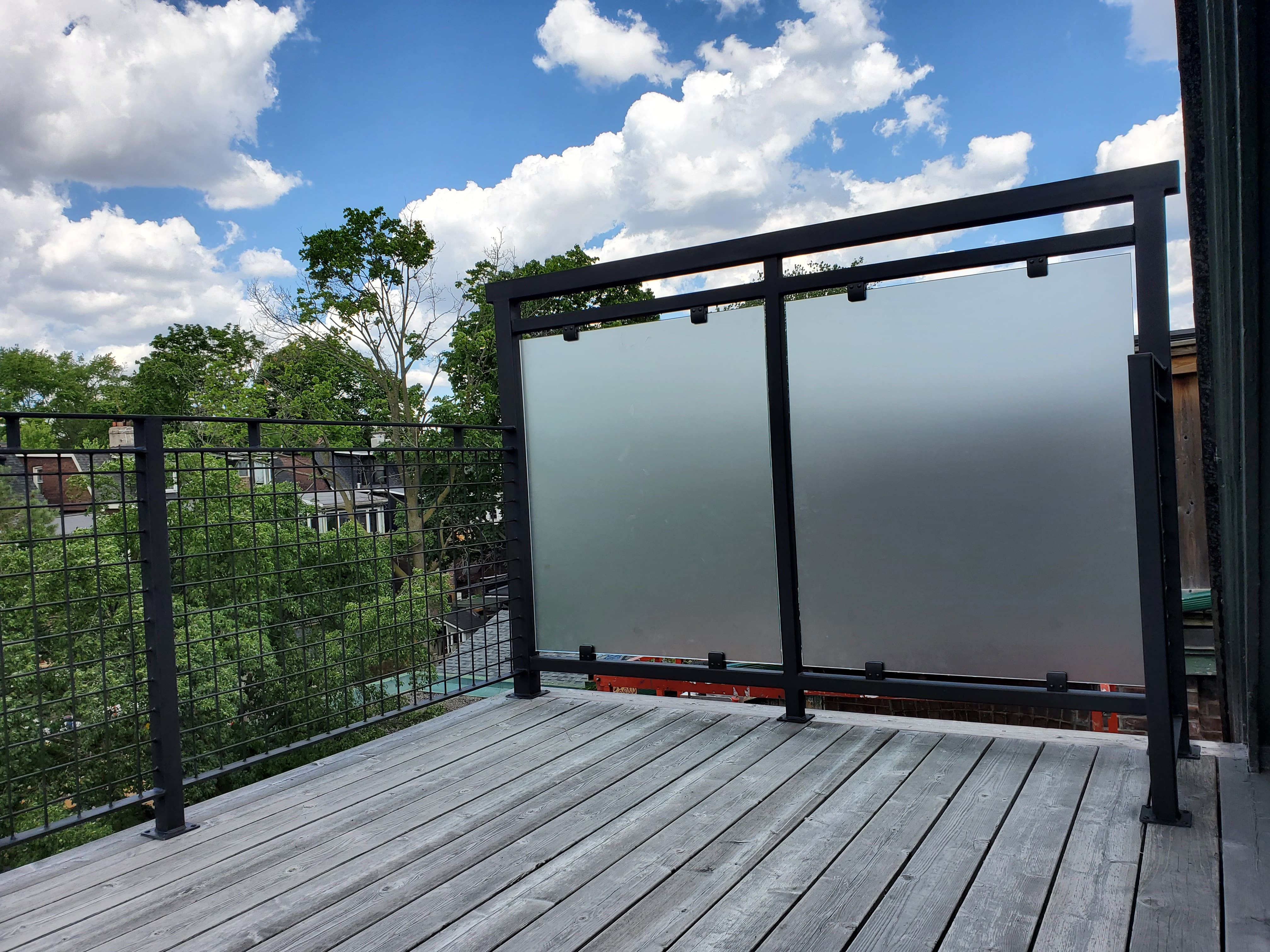 Add privacy and install custom railings on the deck