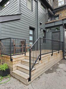 When improving your porch or deck, consider the design of your step railings meticulously as they are crucial for both safety and aesthetic coherence. In Toronto, it’s common to match the step railings with the porch’s main railing design, but adding unique touches can elevate the appearance. Here are some ideas: